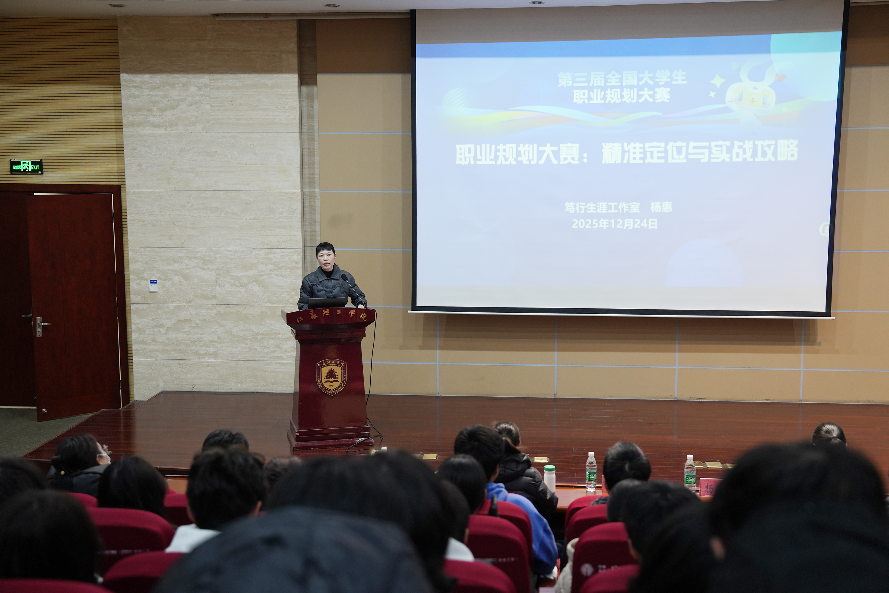 江苏省第十九届大学生职业规划大赛银奖获得者高一斌同学进行了参赛作品展示。他结合自身学习、科研和竞赛经历分享了职业规划与就业思考,展现了青年学子清晰的职业认知与昂扬的奋进姿态。