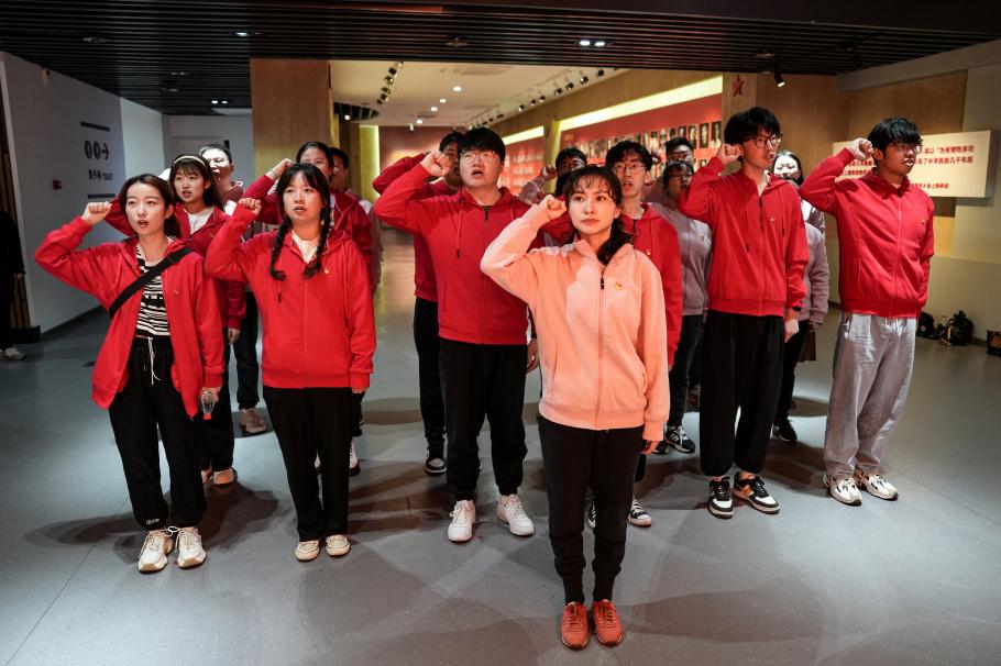 铭记历史,缅怀先烈。在太华山新四军纪念馆和苏南抗日根据地纪念馆,同行师生听讲解、看图文、观实景,全面了解新四军创建苏南抗日根据地的艰难历程,聆听先烈们浴血奋战的英雄事迹,学习“铁军精神”,感受军民鱼水情。党员们在参观中深刻感受到“对我们共产党人来说,中国革命历史是最好的营养剂”的深刻内涵。面对鲜红的党旗,党员们庄严举起右臂,重温入党誓词,坚定入党初心,同时也立下了自觉弘扬革命精神的青春誓言。