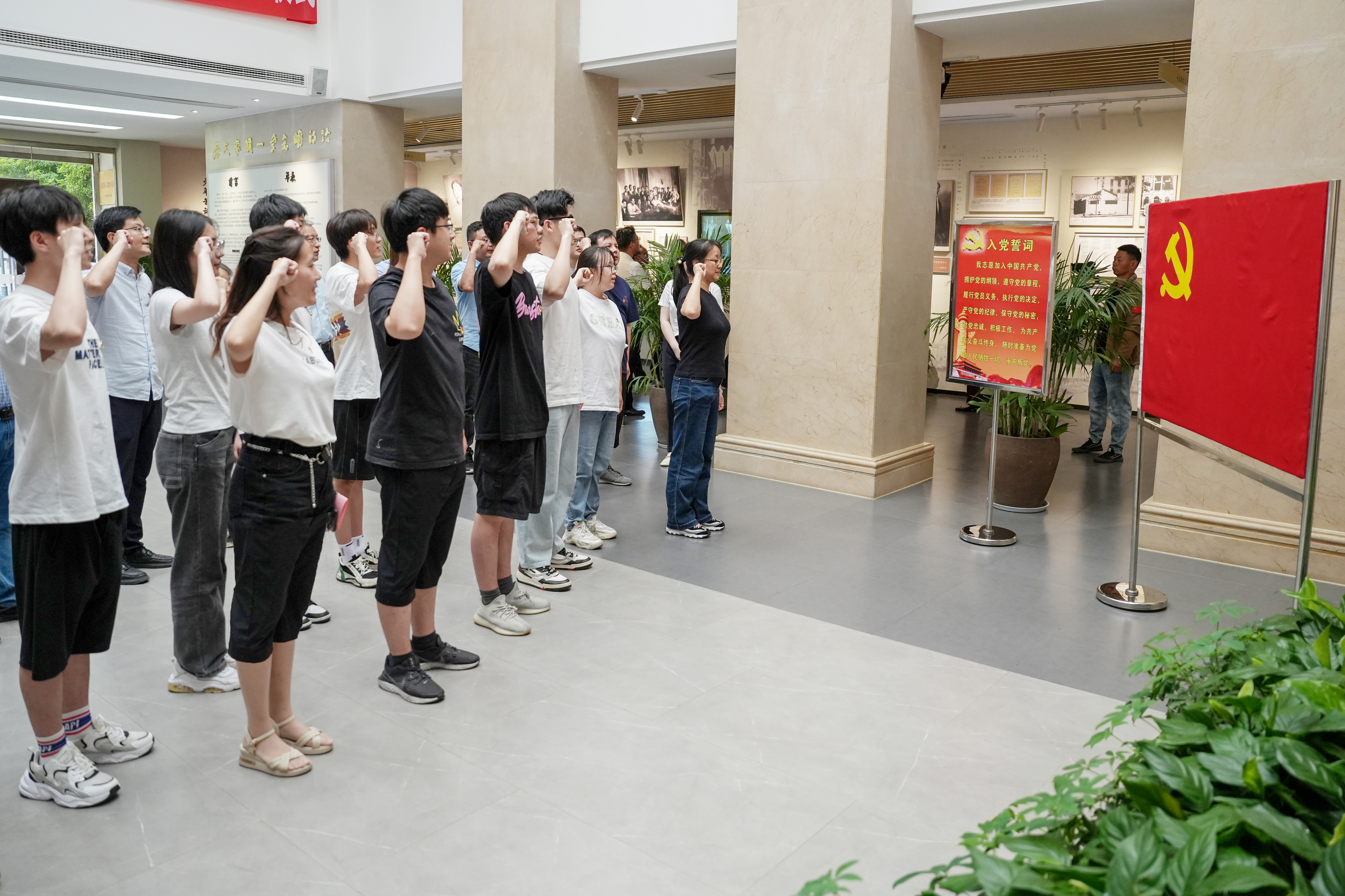 站在瞿秋白的铜像前,师生党员们共同学习瞿秋白同志创作的诗歌。随后,电信学院党委书记罗印升同志为大家上实景党课,他希望全体党员师生认真学习践行“信仰坚定、对党忠诚、追求真理、敢于探索、严于律己、勇于担当”的秋白精神,为推动校院高质量发展,推进中国式现代化,实现中华民族伟大复兴贡献力量。面对党旗,老党员们重温入党誓词,新党员入党宣誓,以铮铮誓言表达向革命先烈学习的决心。
