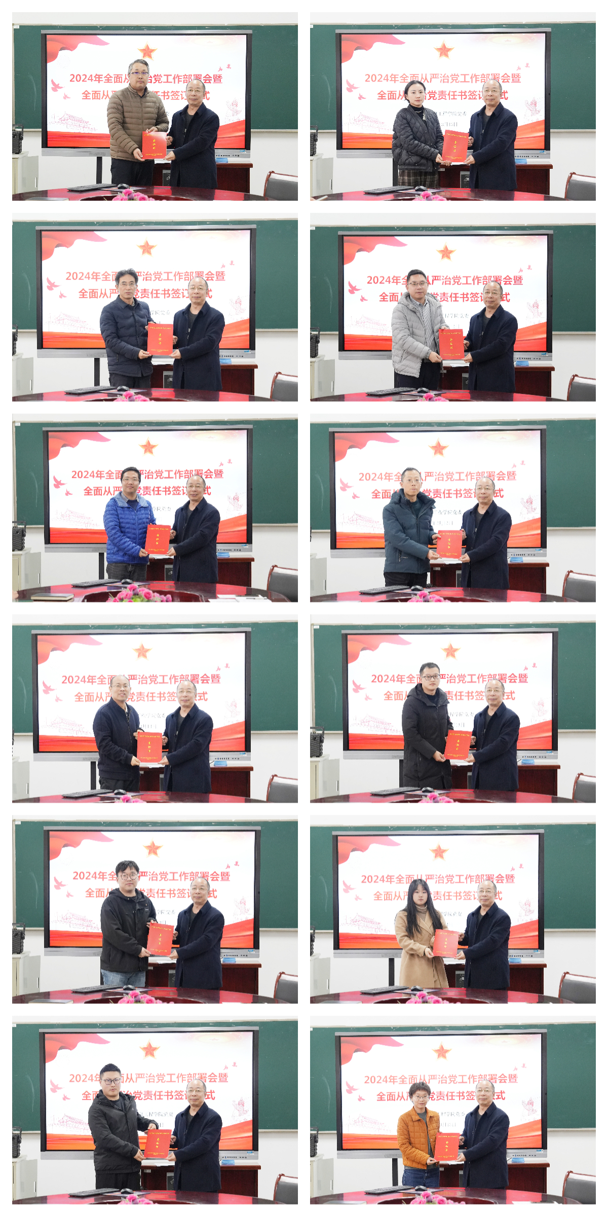 会上,高凯传达学习了二十届中央纪委第三次全体会议和十四届省纪委第四次全体会议精神,详细部署本年度全面从严治党工作,并对责任书进行了深入解读。他强调,做好学院2024 年全面从严治党工作,要坚持以习近平新时代中国特色社会主义思想为指导,深入学习贯彻习近平总书记关于党的自我革命的重要思想,坚决贯彻全面从严治党战略方针,全面落实教育厅2024年教育系统全面从严治党工作会议、校2024年全面从严治党暨警示教育工作会议要求,各位领导干部及党支部书记应自觉将签订的责任书责任落实到具体行动上来,为推进学院高质量发展提供坚强政治保障。