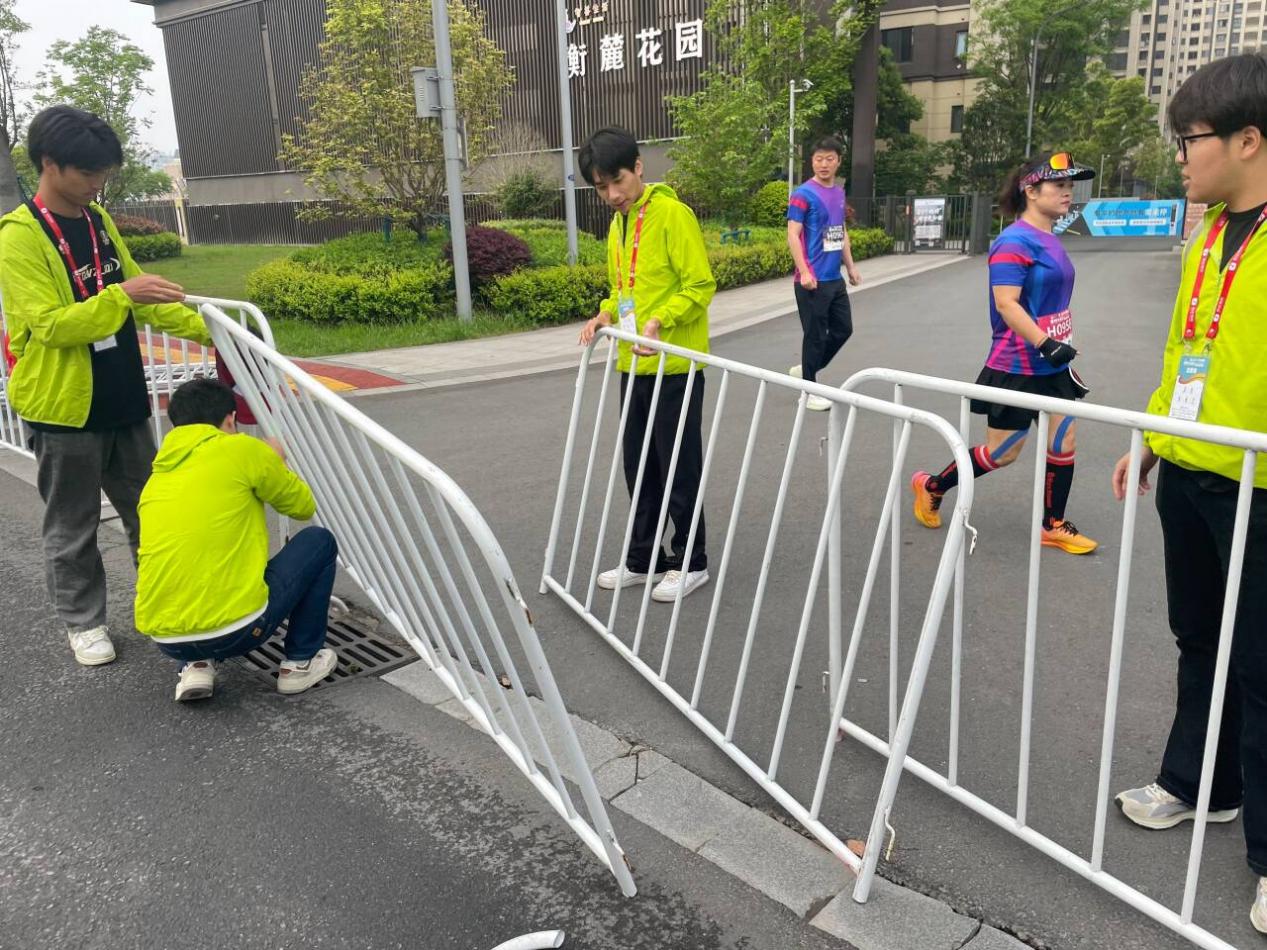 天宁区大运河马拉松的现场,“追锋少年”又肩负起了跑者分流的重任。他们站在关键的交通节点,根据比赛进度和赛道情况,及时引导跑者前往正确的赛道。他们的眼神坚定,手势明确,确保每一位跑者都能顺利、安全地完成比赛。在他们的努力下,整个赛事的秩序井然,跑者们的体验也更加顺畅。在比赛开始前,我们的追锋志愿者还主动帮助现场执勤搭建护栏,保证赛道安全。