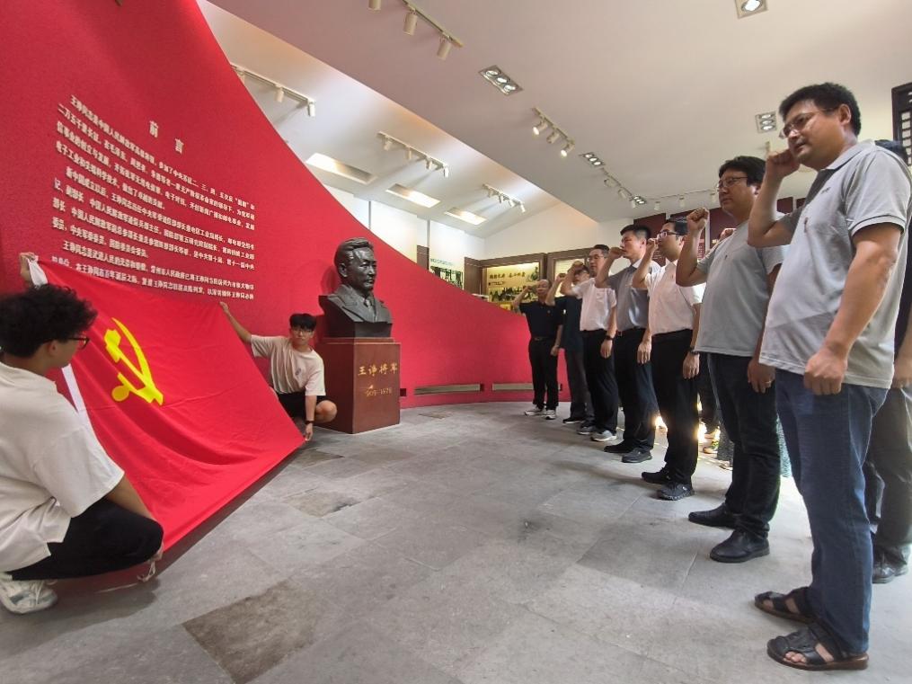 在王诤故居的纪念大厅,全体党员在院党委书记高凯的带领下,重温了入党誓词,誓言字字铿锵,句句掷地有声。在庄严的党旗下,回顾建国75周年的辉煌历程,师生们深刻体会到,是无数像王诤将军这样的先烈们用鲜血和生命换来了今天的和平与繁荣。学生们表示,作为新时代青年,我们不仅要铭记历史,更要以实际行动践行入党誓言,将爱国之情转化为报国之志,努力学习专业知识,为实现中华民族伟大复兴贡献自己的智慧和力量。