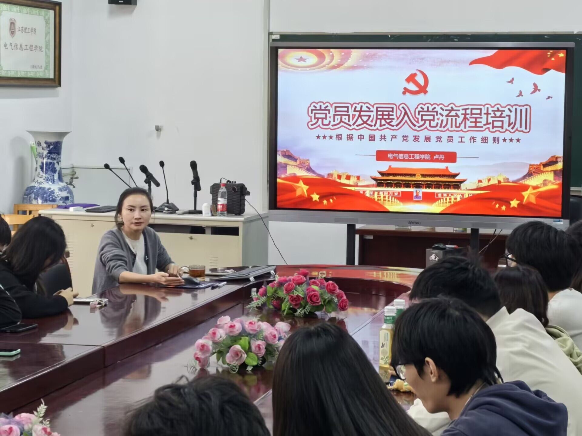 11月12日中午,日本女优 党委副书记、副院长卢丹在60-309会议室为日本女优 入党积极分子和发展对象上了一堂题为《党员发展入党流程培训》的专题党课。