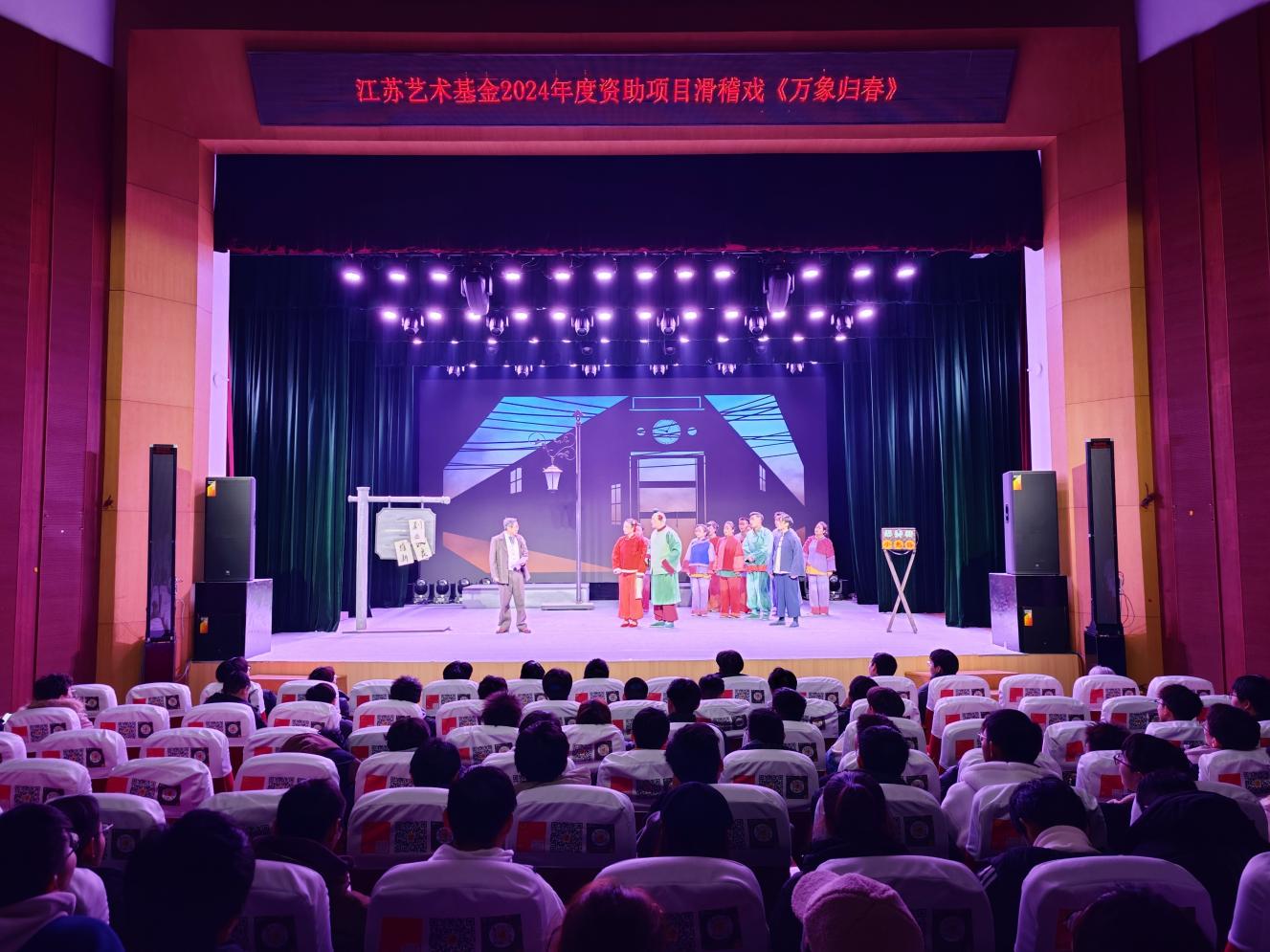 滑稽戏《万象归春》荣获2024紫金文化艺术节“优秀剧目”奖。该戏紧扣庆祝新中国成立75周年时间节点,讲述了常州“小热昏”民间艺人坚持“宁做冒失鬼,不做窝囊废”的人生信条,与旧社会恶势力斗智斗勇,从普通的江湖艺人成长为有骨气、有担当者的故事。《万象归春》以常州党史、常州地方志、常州曲艺史为创作依据,用人民群众喜闻乐见的艺术形式刻画了敬业、友善、诚信、爱国的底层人民真心拥护共产党、矢志不移跟党走的内心世界,展示了优秀传统文化与中华美学精神独特的魅力与风采。