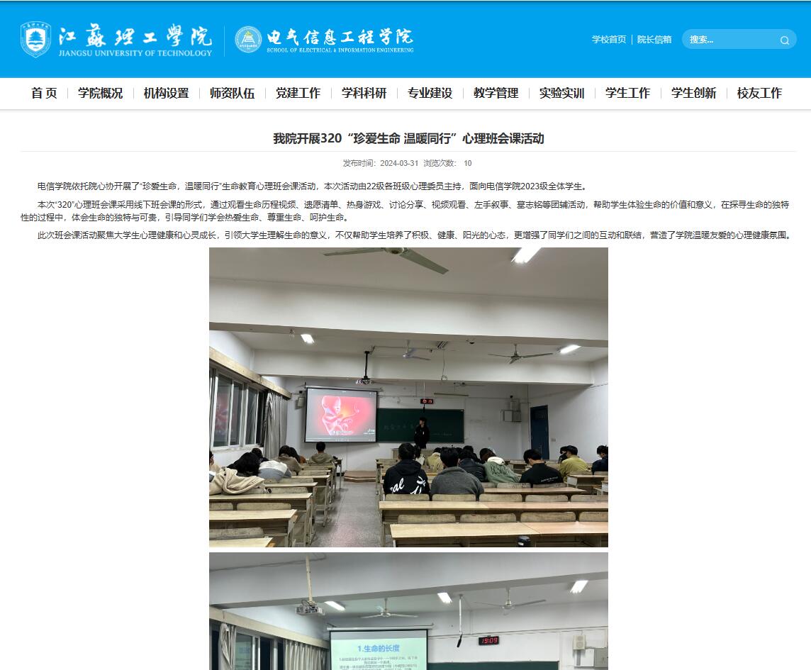 电信学院依托院心协开展了“珍爱生命,温暖同行”生命教育心理班会课活动,本次活动由22级各班级心理委员主持,面向电信学院2023级全体学生。