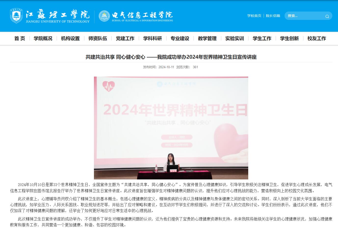 8.“共建共治共享,同心健心安心”2024年世界精神卫生日宣传讲座