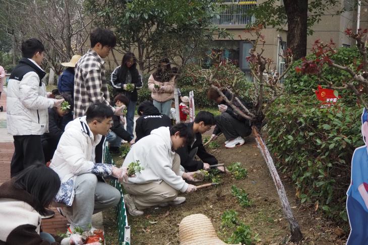 下午三时许,同学们准时到达。在学院老师和社区工作者的带领下,大家热情高涨,干劲十足。活动现场,同学们分工明确,配合默契,挥锹挖坑、扶苗培土、浇水灌溉,各个环节井然有序,呈现出一派热火朝天的劳动景象。经过一番辛勤劳作,一棵棵新栽种的树苗迎风挺立,为初春的大地增添了勃勃生机。