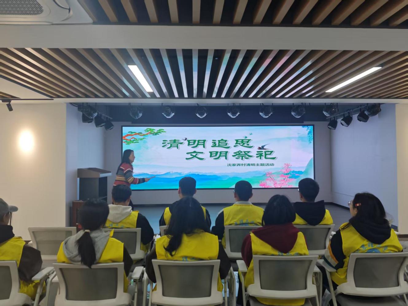 活动现场,志愿者与社区老人一起学习文明祭祀的相关内容,志愿者还向老人普及文明祭祀理念,倡导以鲜花追思、云端寄语等低碳方式缅怀故人。