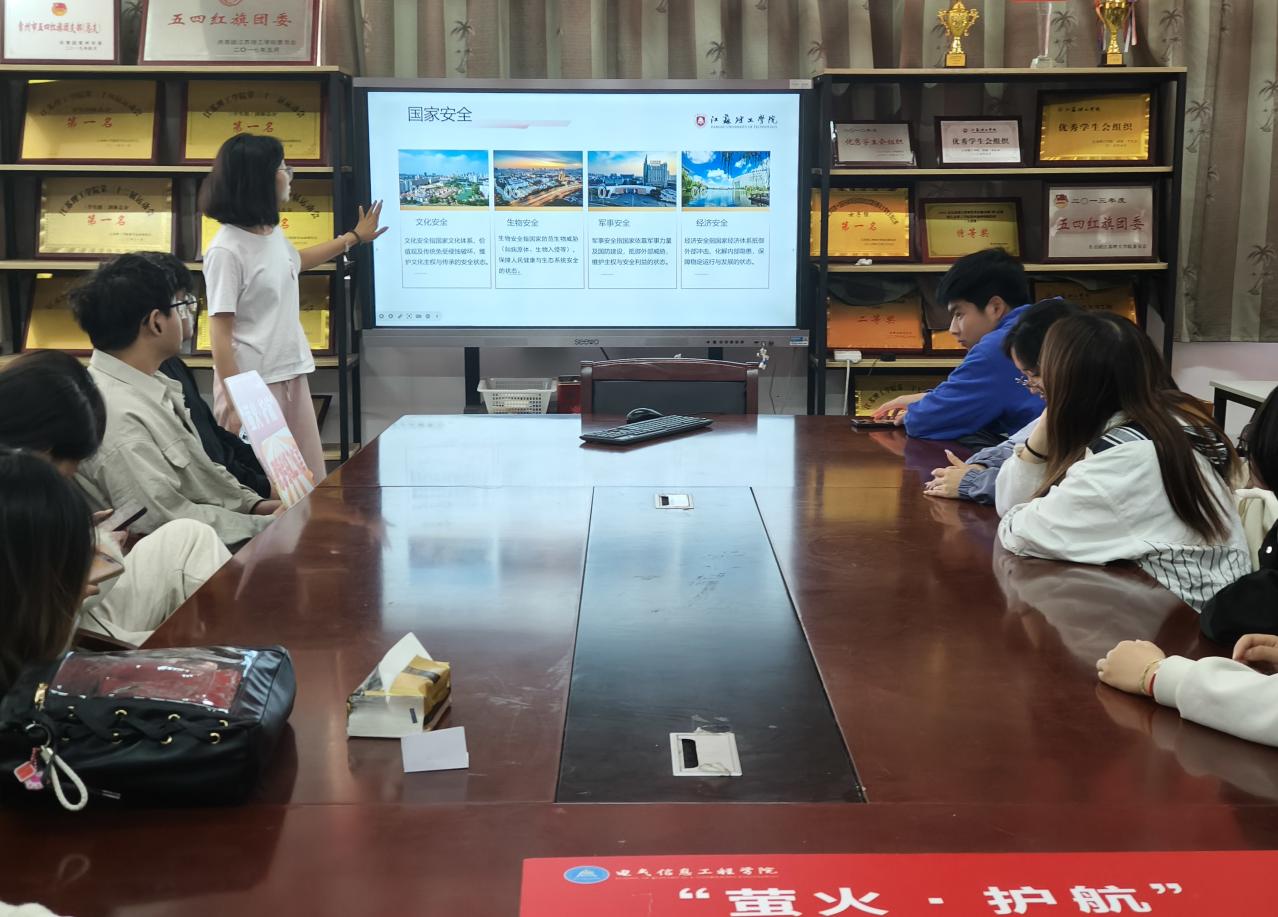 党的二十大报告指出:“国家安全是民族复兴的根基,社会稳定是国家强盛的前提。”青年作为国家发展的生力军,是维护国家安全的重要力量。本次团日活动旨在通过多样化的教育形式,帮助团员青年树立“国家安全,人人有责”的理念,增强防范和抵御安全风险的能力,引导青年将个人成长融入国家安全事业中。通过播放国家安全教育短片,团员们直观感受到隐蔽战线斗争的复杂性和维护国家安全的紧迫性。在科技竞争、文化博弈、信息安全的战场上,我们每个人都肩负重任。从规范网络言行做起,不传播负能量信息;从提升警惕意识做起,谨防“学术交流”背后的陷阱;更要以专业所学为盾,未来在人工智能领域深耕时,坚守数据安全与科技伦理的底线。
