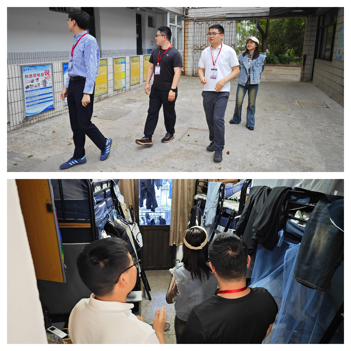 宿舍走访织密防护网。班会结束后,班主任走进宿舍,重点排查电线私拉乱接、违章电器使用等安全隐患。检查过程中,老师们同步开展“安全微课堂”,告知学生不规范用电可能带来的严重后果,提醒学生离宿前完成卫生清洁、切断电源、门窗闭锁"三步自查。