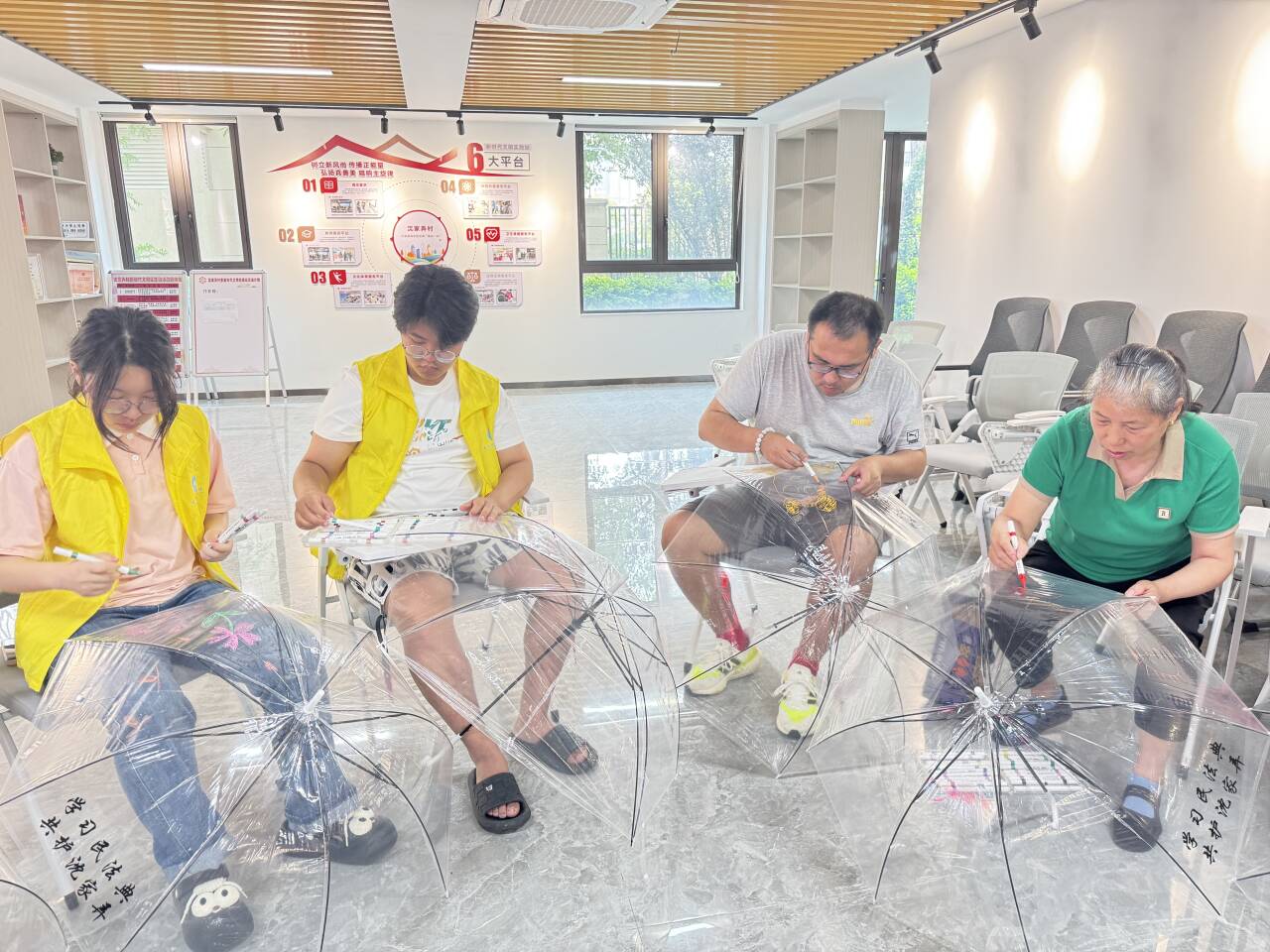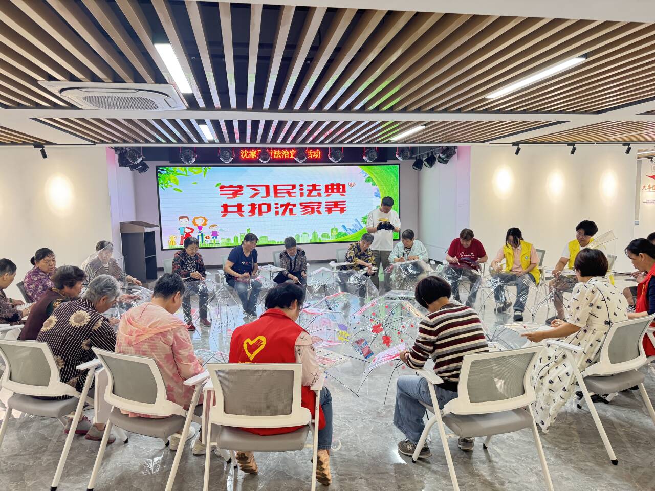 最受欢迎的是雨伞绘制环节。志愿者们与社区居民一起,在透明雨伞上绘制合同印章、家庭树等法律元素图案,将生硬条文转化为生动艺术。绘制完成后,所有参与者手持作品齐聚一堂,记录下这特别的普法时刻。