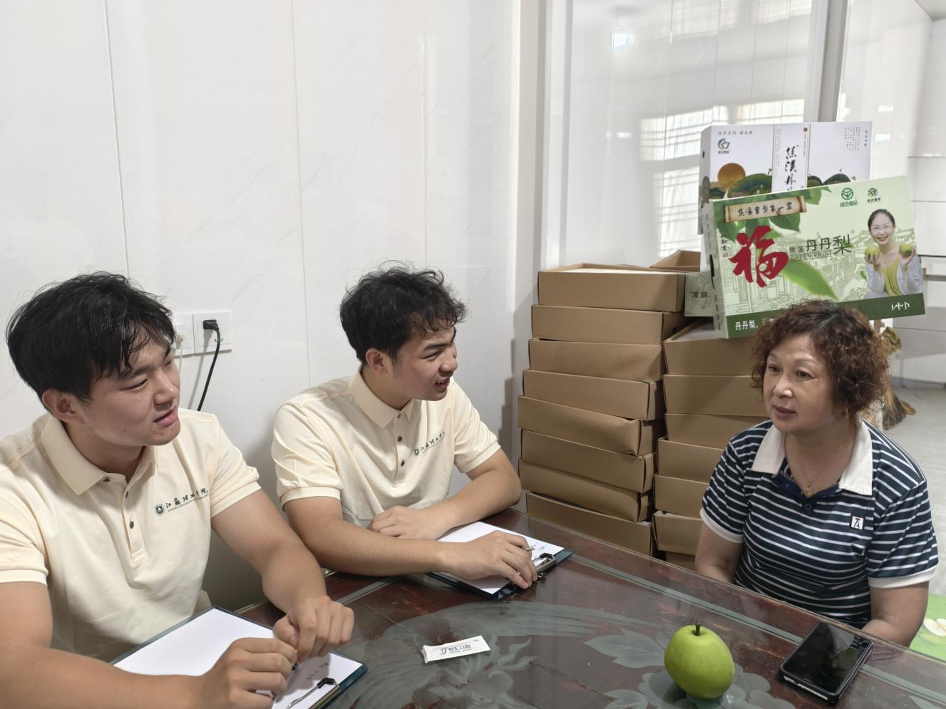 在焦溪丹丹梨园,实践团成员们开启了一场别开生面的助农之旅——“直播带货”。他们化身为热情的主播,通过镜头向广大网友展示焦溪丹丹翠冠梨的独特魅力。