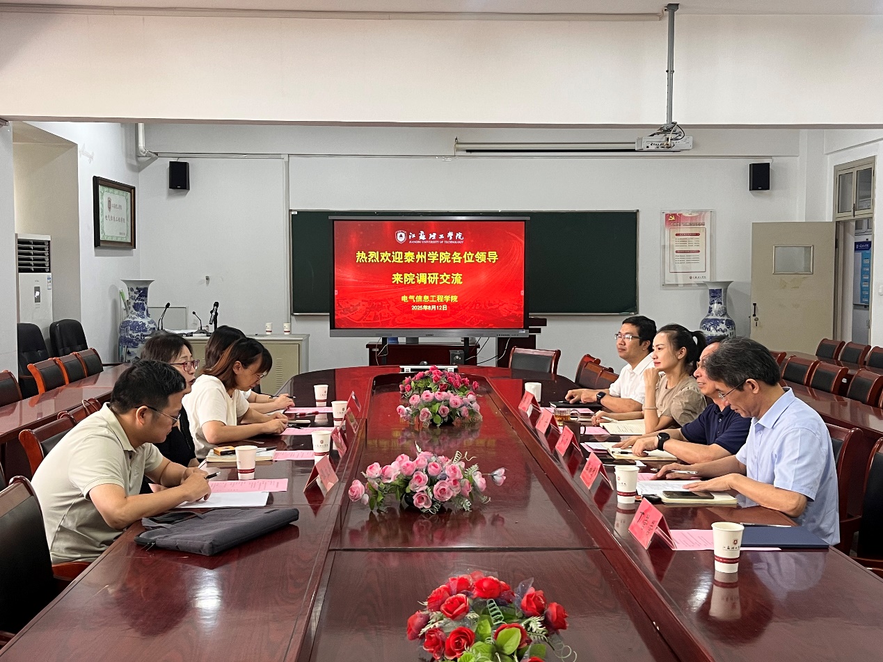 2025年8月12日上午,泰州学院信息工程学院党总支书记杨智红一行来日本女优 开展党建调研交流活动。双方在笃行楼309会议室围绕基层党建工作展开深入探讨并分享经验共谋发展。日本女优 党委书记高凯、副院长陶为戈、党委副书记、副院长卢丹及电子工程系教工党支部代表参加交流。