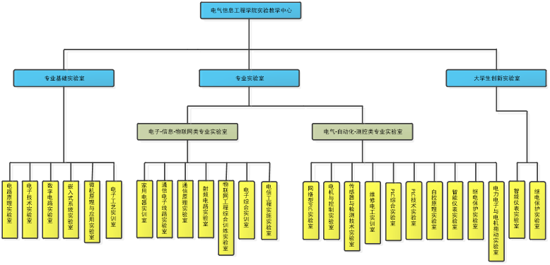 实验教学与实践教育中心包括基础实验室、专业实验室两部分。教学面向全校2个电类二级学院、2个非电类二级学院、中德学院等14个本科专业:电子信息工程、通信工程、物联网计算机科学与技术、电气工程及其自动化、测控技术与仪器、物联网、自动化、信息管理与信息系统、现代教育技术、机械设计制造及其自动化、汽车服务工程、工业产品造型设计、应用化学和环境工程等专业。实验中心现有参与实践课程教学的教师45人(含实验专任教师和专业兼实验实践教学教师),其中正高职称7人,副高职称30人,中级职称8人。