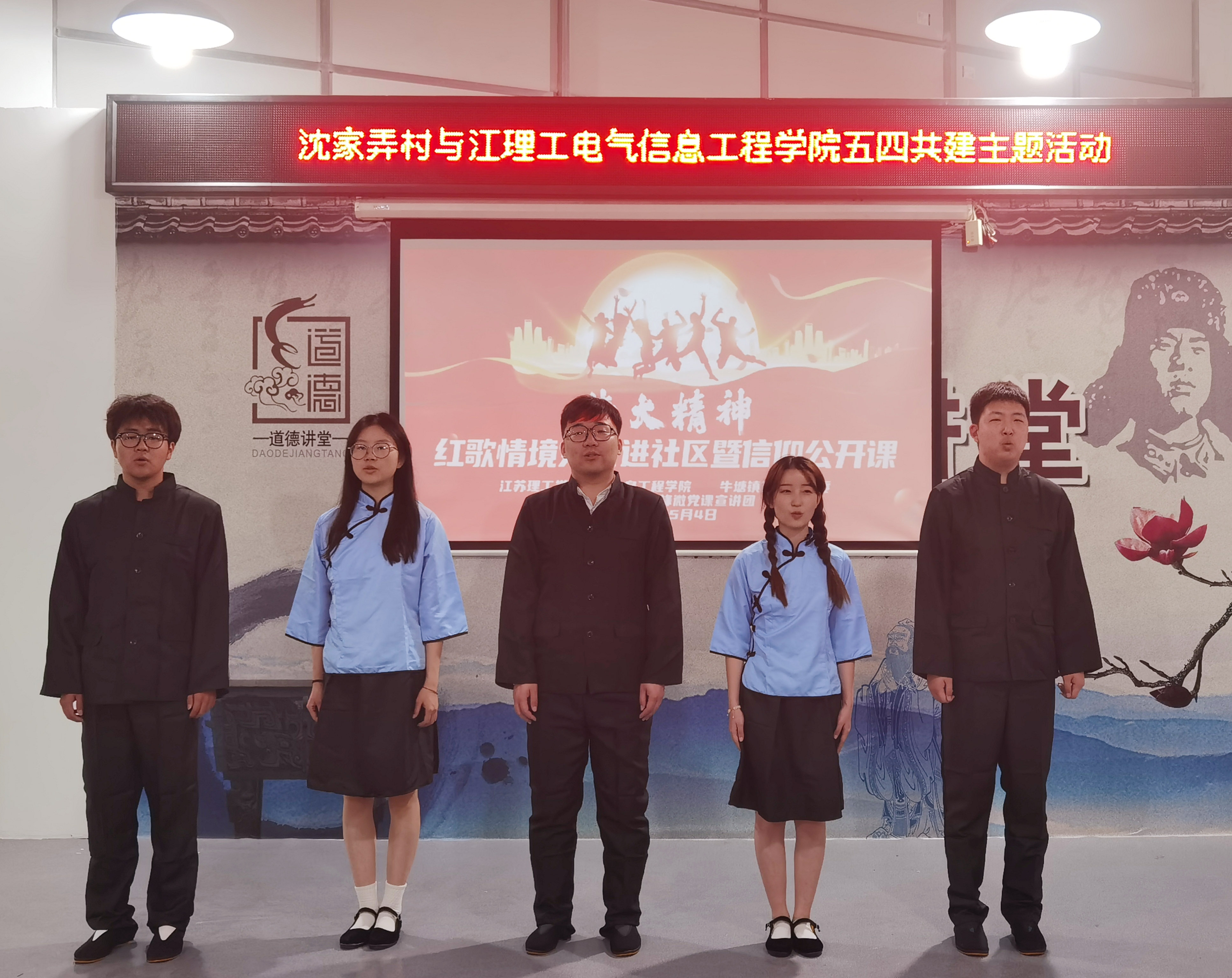 红歌情境党课精彩纷呈,现场掌声不断。话剧、红歌齐上阵,老师、学生默契搭档,生动再现百年前的革命岁月,上演了一出江理工版《觉醒年代》。课程最后,沈家弄村老党员代表和青年学生开展了热烈的互动交流,有着几十年党龄的老党员包仁根和陈荣方同志讲述和回忆了他们的故事,这正是“让红色基因、革命薪火代代传承”的生动演绎。