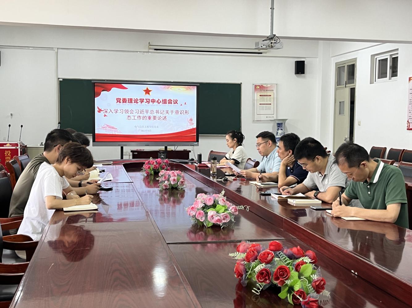 学院党委委员、电气工程系教工党支部书记王琪重点发言。他指出,高校意识形态教育尚存在感染力不够、沟通有限、课程内容思想性开发不够、协同水平不高等问题。同时面临外部环境挑战巨大、意识形态教育形式略显滞后、互联网技术冲击等挑战。他认为,高校意识形态教育需要高校在思想上、组织上、意识上进行协同配合,借助各类课堂形式和教育手段,才能形成全方位、多层次的教育合力,进而更好地提升高校意识形态教育的效果。
