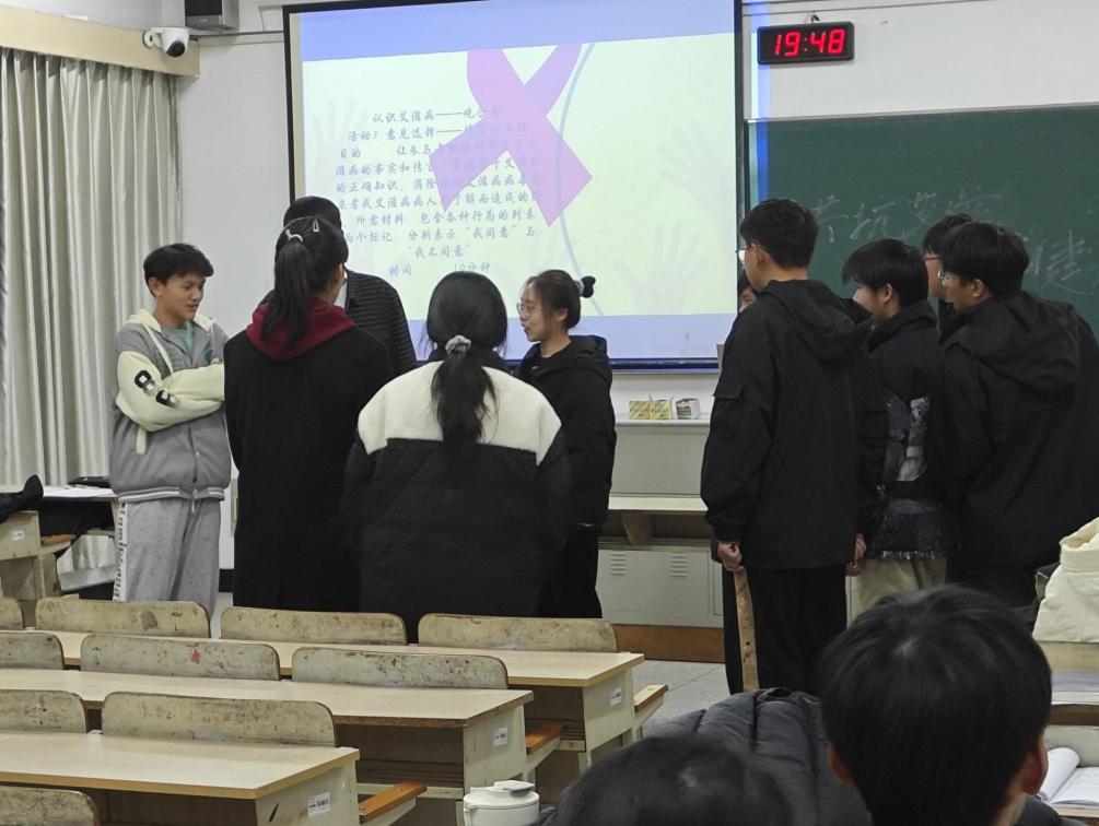 班会活动邀请已经注册的青春同伴宣讲员作为主持人,通过“认识艾滋病--速度篇”,“认识艾滋病--病理篇”,“认识艾滋病--观念篇”,“认识艾滋病--途径与行为篇”四个篇章和野火游戏、人体免疫系统模拟游戏、意见选择——传言和真相、认识危险行为与传播途径等趣味团辅游戏让同学们了解了艾滋病的传播机制及致病机理等基本知识,随后各班通过在线测试“青年学生艾滋病防治项目自测系统”检测了活动成效。