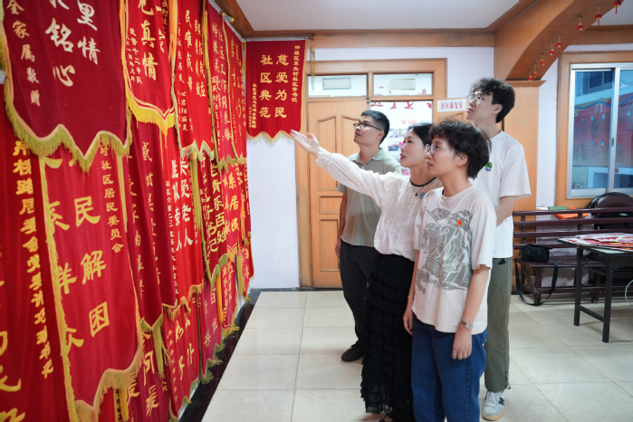 全体师生首先参观了道德讲堂的发源地,看着开满紫藤花的道德长廊,仿佛能看到许奶奶与大家走在一起的身影。走进工作室一楼,映入眼帘的是许巧珍书记的半身肖像雕塑和层层叠叠一整墙的锦旗奖状。“每一面锦旗后面都是一个故事”,社区宣讲员指着锦旗,给大家讲述许巧珍书记生平的桩桩温暖事迹,“它们都是许巧珍奶奶为社区服务21年所获得的荣誉”。通过墙上生动详实的图片文字和讲解员的解说,了解了许巧珍平凡的人生轨迹和她真诚服务居民的感人故事。