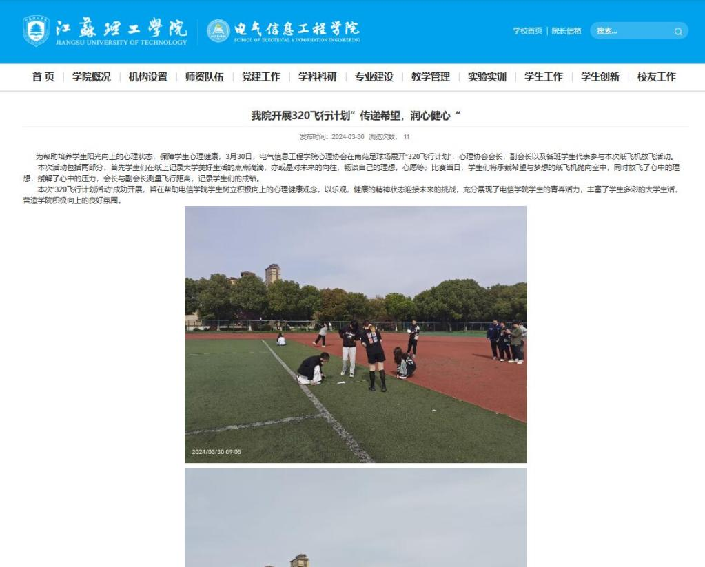 为帮助培养学生阳光向上的心理状态,保障学生心理健康,3月30日,日本女优 心理协会在南苑足球场展开“320飞行计划”,心理协会会长,副会长以及各班学生代表参与本次纸飞机放飞活动。