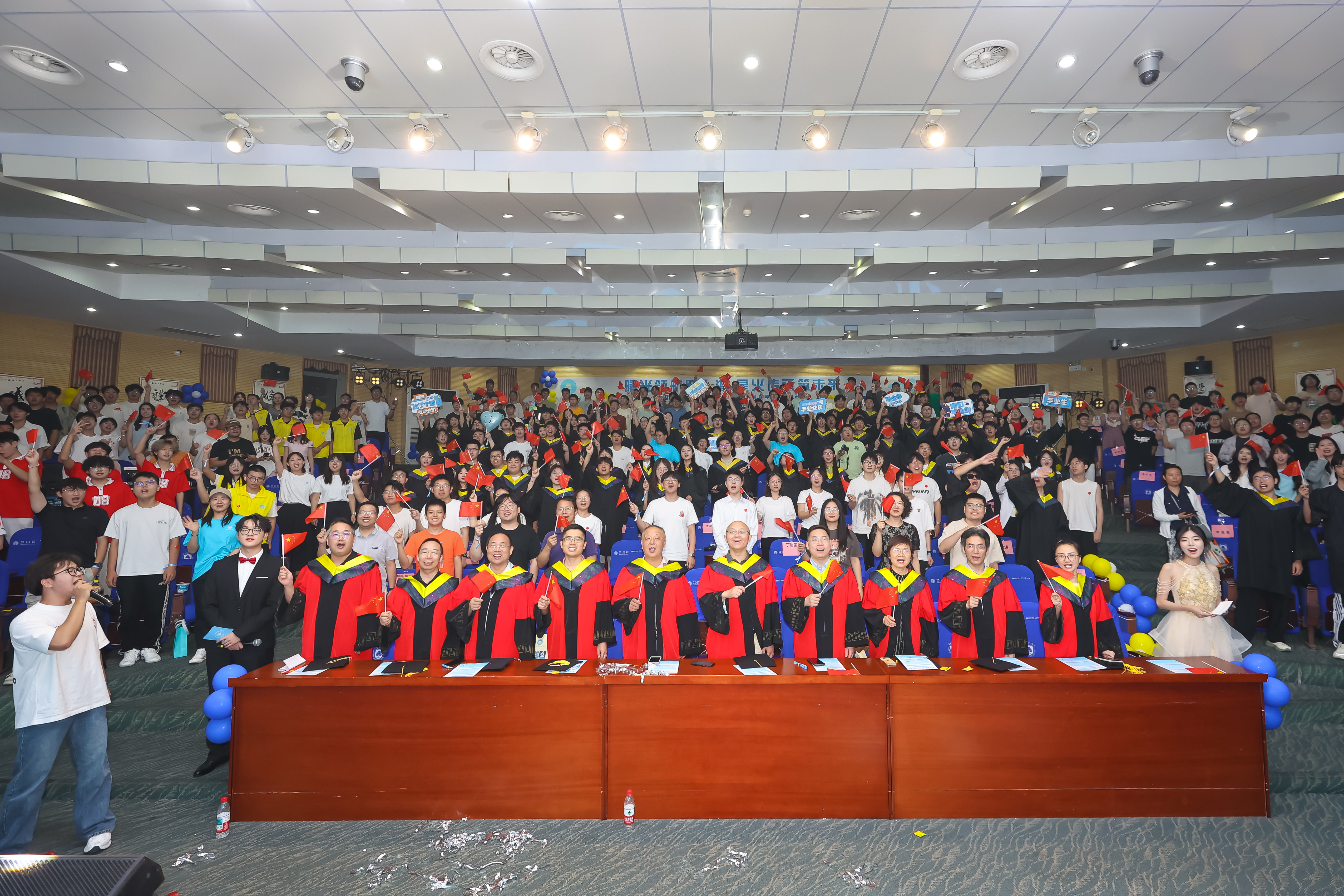 大会伊始,学风表彰篇章由卢丹主持。开场歌曲《青春修炼手册》活力开唱,瞬间点燃现场氛围,拉开活动帷幕。随后,全体师生奏唱国歌,庄严仪式感中,开启荣誉表彰环节。学院领导高凯、俞洋、陶为戈、王琪宣读了关于表彰2023-2024学年国家奖学金、国家励志奖学金获得者,省级及以上学科竞赛奖励学生、考研先进个人、本科优秀毕业生的决定,关于授予蔡健臣等310位同学学士学位的决定。