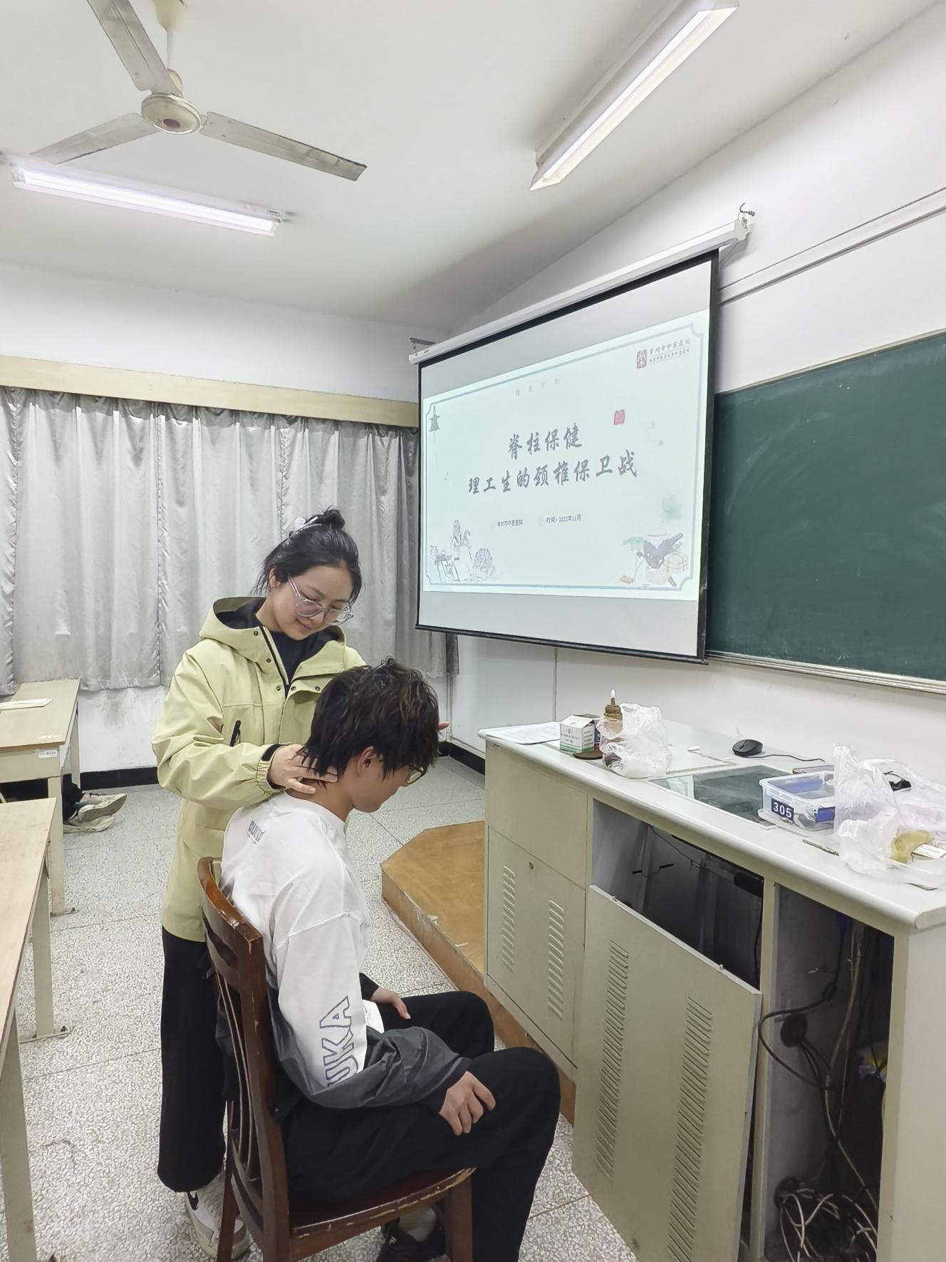 讲座中,成菲雨系统讲解了颈椎的构造与生理曲度,介绍了六类常见颈椎病及其典型表现,并将现代青年面临的颈椎威胁归纳为三大“杀手”:一是手机“低头刑”,头每前倾2.5厘米,颈椎负担即翻倍;二是空调“风寒箭”,冷风直吹颈部易致风寒侵袭督脉,气血运行受阻;三是熬夜“肝血劫”,长期熬夜耗伤肝血肾精,导致筋骨失养。