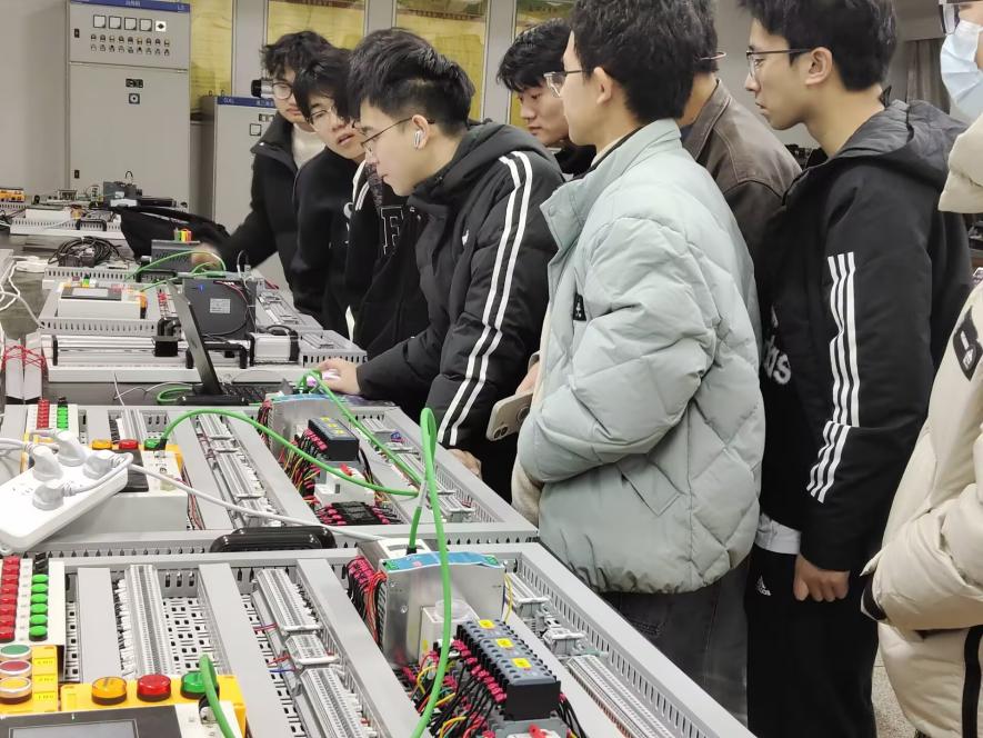 活动核心的技术培训环节聚焦“信捷杯”全国大学生智能制造创新大赛培训。按照前期精心策划的活动方案,先简要说明编程软件与人机交互软件的备赛作用,再指导软件下载、安装与参数设置,确保全员成功部署;随后围绕“编写首个PLC程序”,从基础逻辑控制切入,演示代码输入与逻辑关联,同步俯身纠正操作、讲解逻辑,即时排查软件报错等问题。全程无复杂理论,以“能上手、会操作”为目标,让同学们顺利掌握软件基础使用、写出首个程序,消除对专业软件的陌生感,为信捷杯备赛打下入门基础。